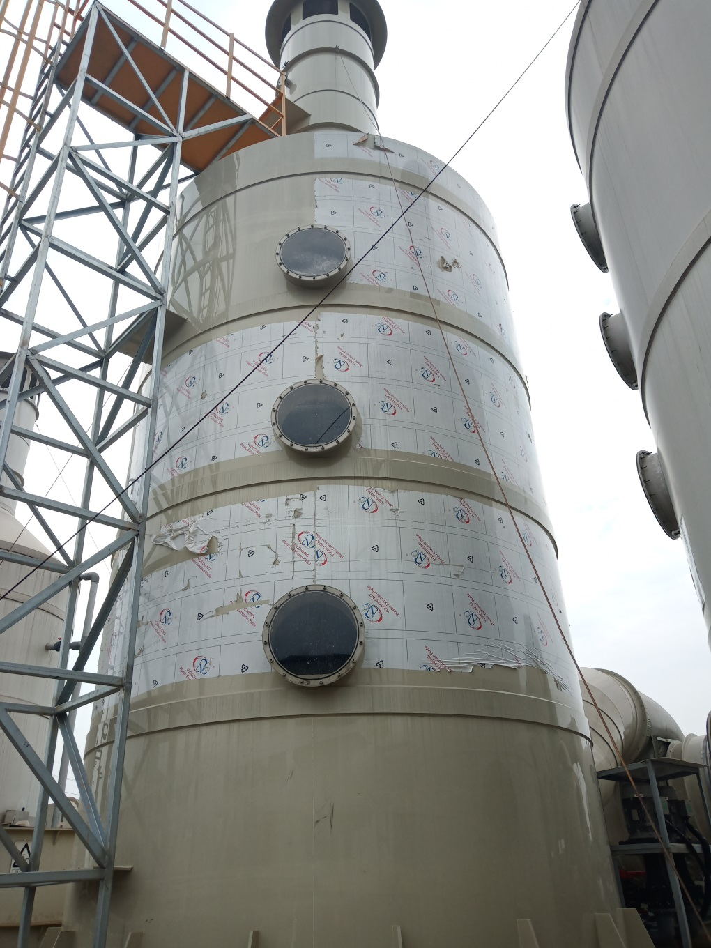 這個就是噴淋塔,是的,這個應用(yòng)範圍廣一些,除了處(chù)理揮發性有機物可用以外,處理一些堿性(xìng)廢氣,酸性廢氣也是主要設備之一。